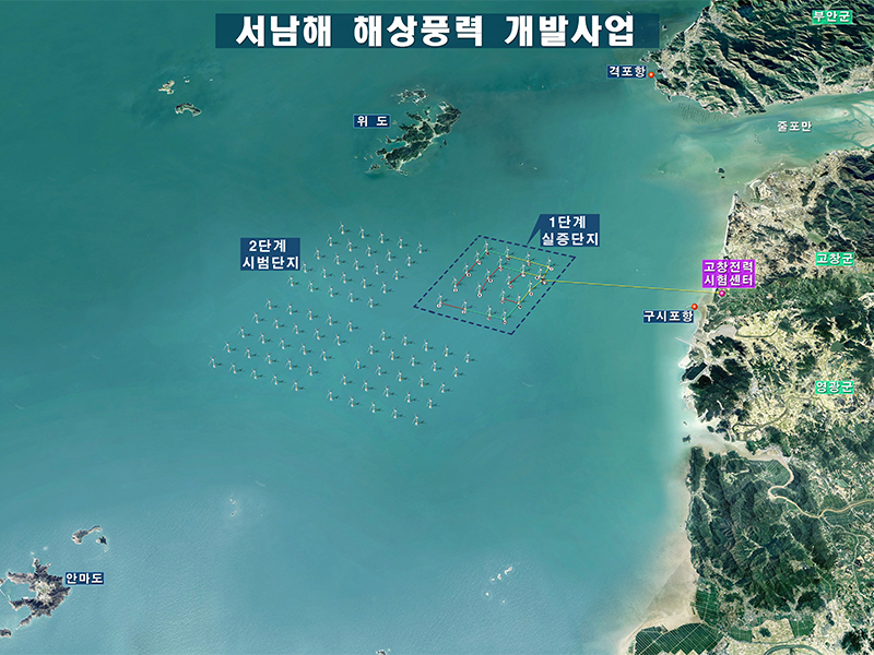 국내 해상풍력산업의 핵심 모태가 되는 서남해 해상풍력 실증단지 건설공사를 수행하였습니다.