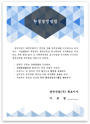 환경경영방침 및 환경목표 세부추진계획 수립